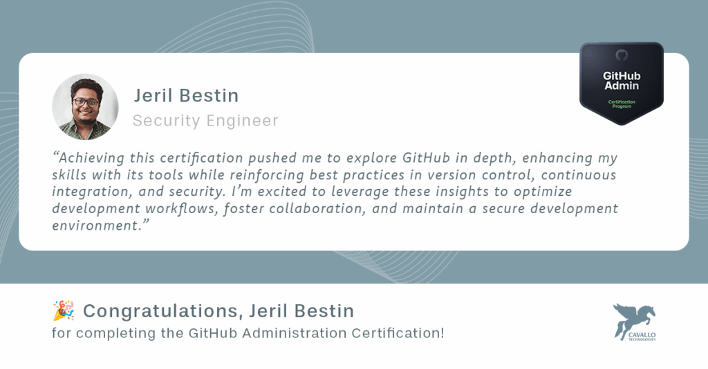 We’re proud to congratulate Jeril Karakombil Bestin on earning the GitHub Administration Certification! 🎉